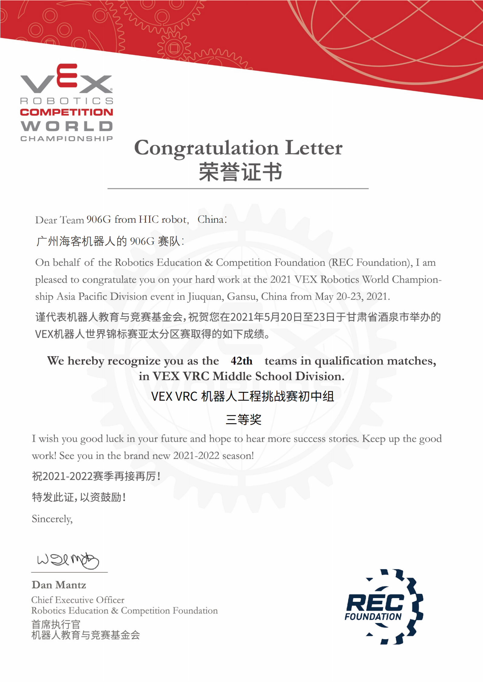 202105 VEX机器人世界锦标赛亚太分区赛(甘肃酒泉)