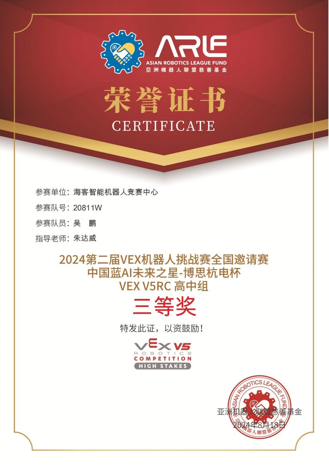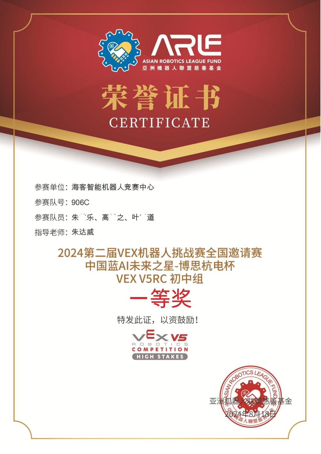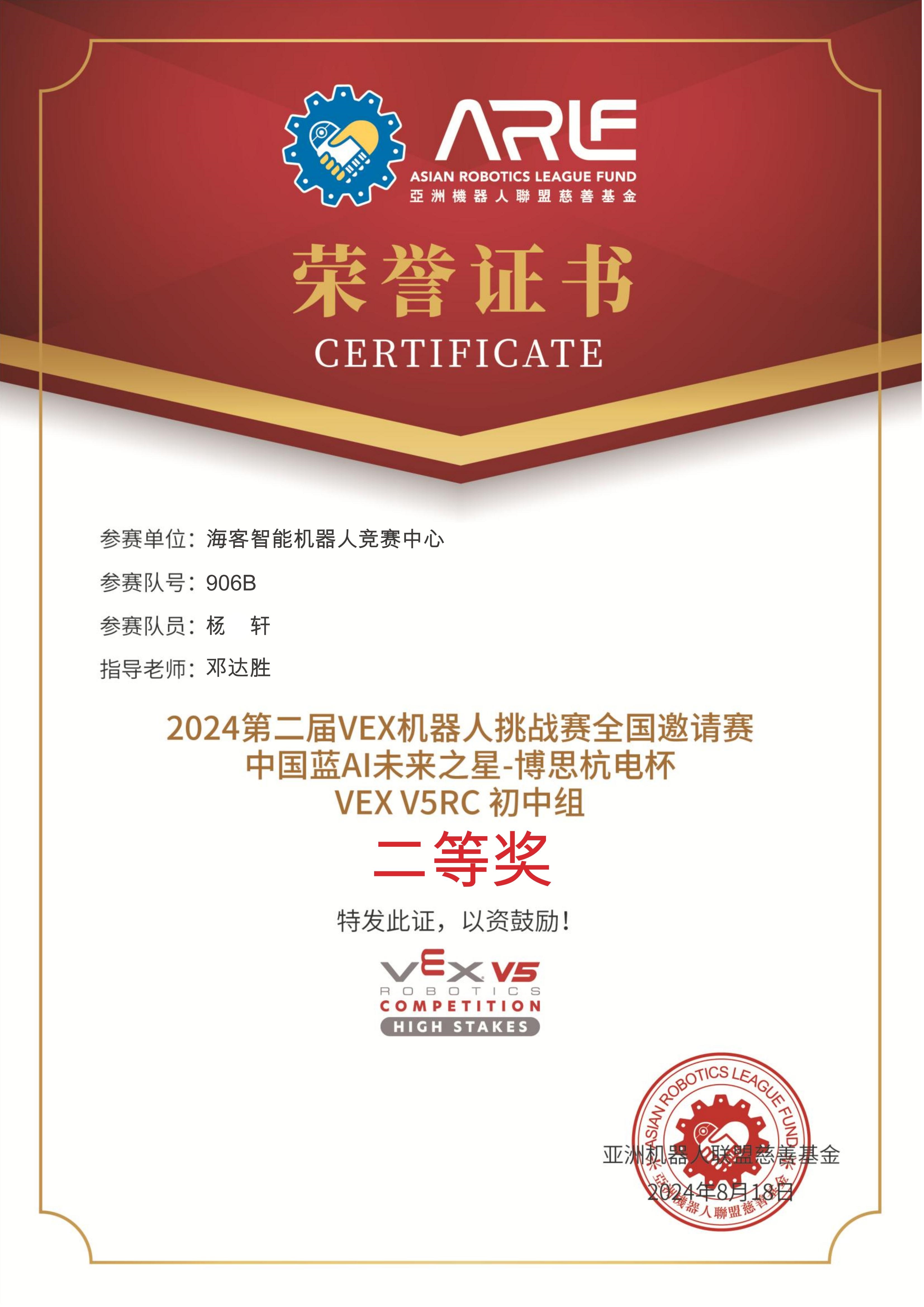 202408 2024第二届VEX机器人挑战赛全国邀请赛中国蓝AI未来之星-博思杭电